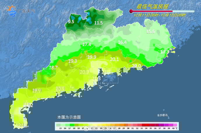 今天(12月11日),清遠、韶關多云到陰天,有分散小雨,其余市縣多云,局部有小雨;中西部市縣早晚有(輕)霧。最低氣溫:粵西、珠三角市縣21~24℃,其余市縣18~21℃。