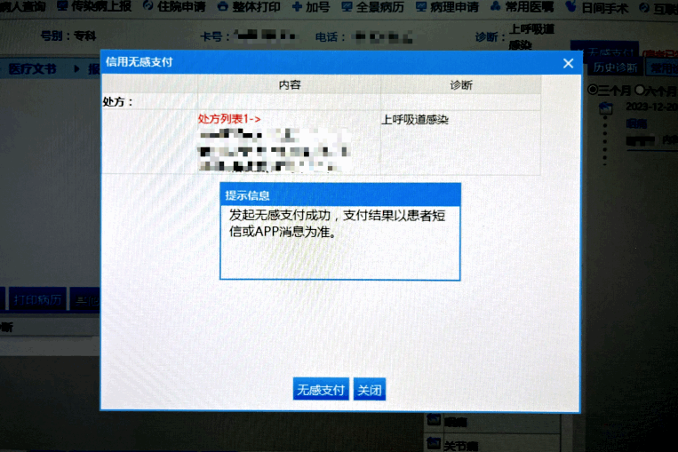 問診結束時,醫生再次與黃先生確認使用無感支付后,在診療系統選擇“無感支付”結算,黃先生無需任何操作就完成了醫保報銷及個人付費結算。黃先生直接跳過排隊繳費環節,前往藥房取藥后去治療室打針,開始治療時間比其他病人快1小時,極大地節省了時間,黃先生對廣州醫保就醫信用無感支付稱贊不已。