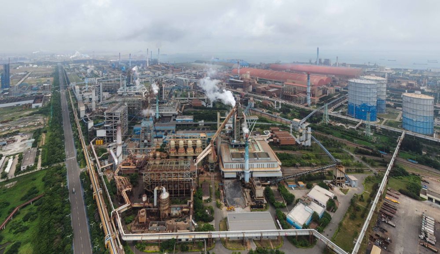 廣東省湛江市東海島拍攝的寶鋼湛江鋼鐵廠區(2023年5月25日攝,無人機照片)。新華社記者鄧華 攝