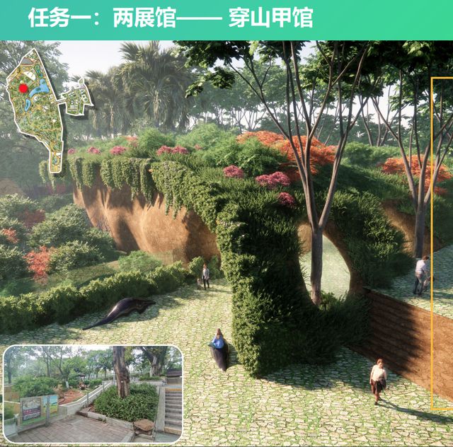 新建穿山甲館位于動物園北部,原狀為浣熊展區的東北角。新建穿山甲館將包含室內展區、后勤管理區、室外展區、景觀綠化的建設及主題廣場改造等。