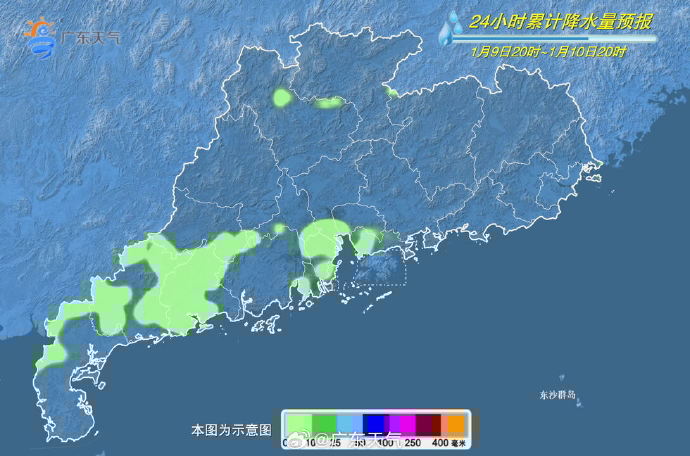 9日,中北部市縣多云到陰天,有小到中雨局部大雨,其余市縣多云間陰天,有分散小雨。早晨最低氣溫:粵北和粵東市縣10℃~13℃,珠江口附近和粵西市縣17℃~20℃,其余市縣14℃~16℃。