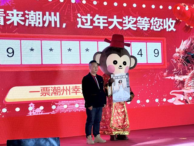 抽獎方式:由潮州市文旅投統計前一日成功支付“一票潮州”的手機號碼,抽獎時,由應邀嘉賓隨機抽取2名幸運兒贏取當日大獎,每名中獎人可對應獲得一套婚紗禮服(價值18888元)或一桌精品潮州菜(價值8888元)。(為了體現活動的公開透明,南方+、潮州日報社、潮州電視臺等主流媒體對抽獎全程直播,見證驚喜,傳遞歡樂。)