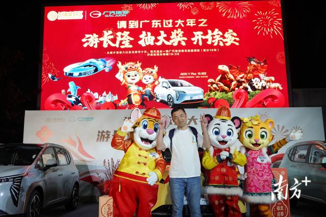 大年初五迎財神,來廣東旅游的吳先生,迎來自己在龍年的頭一份好運——一輛全新的廣汽埃安AION Y Plus智能純電車的使用權。當晚,由南方+、觸電新聞主辦的“請到廣東過大年之游長隆、抽大獎、開埃安”活動開出第六個大獎,來自江蘇蘇州的吳先生成為幸運兒。