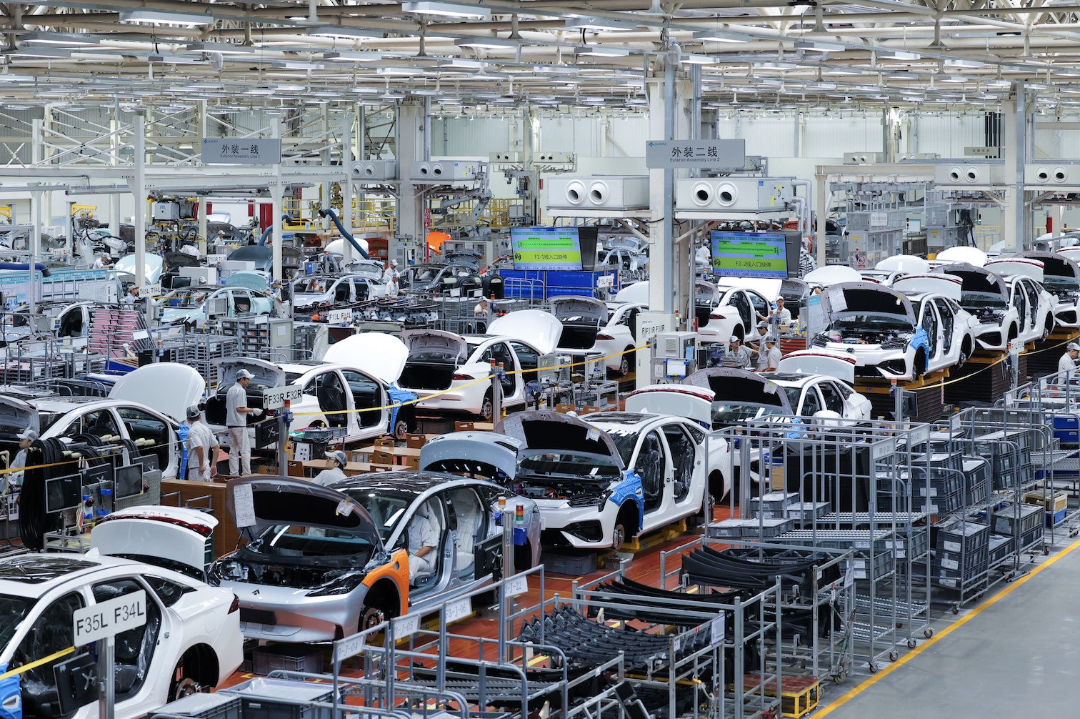 全國每4輛新能源汽車就有1輛是“廣東造” 圖為廣汽埃安新能源汽車生產線
