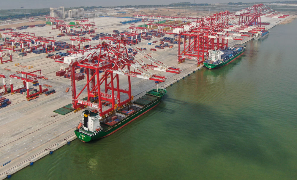 這是2022年7月28日拍攝的廣州港南沙港區四期全自動化碼頭。新華社記者鄧華 攝