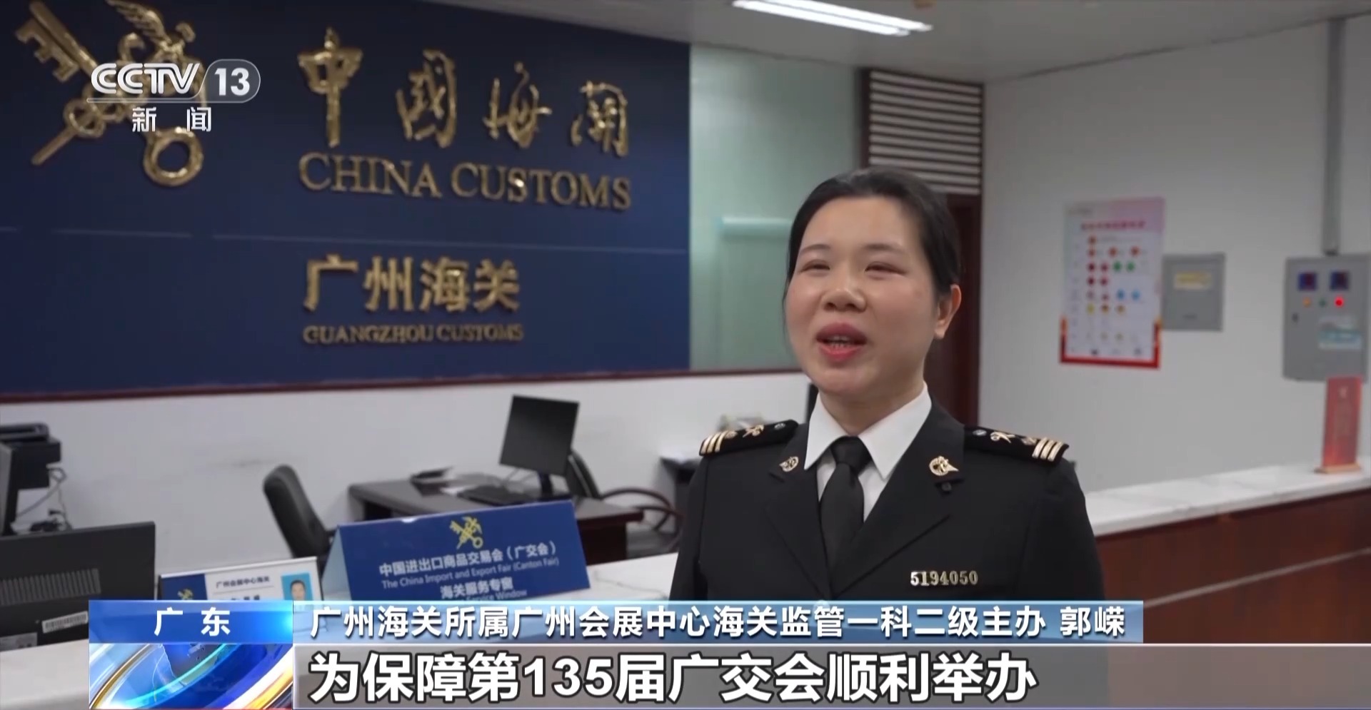 廣州海關所屬廣州會展中心海關監管一科二級主辦 郭嶸:為保障第135屆廣交會順利舉辦,我們在業務現場設立廣交會服務專窗,全天候接受參展企業預約通關,優先辦理申報、查驗、抽樣、檢測等手續。同時在廣州白云國際機場、琶洲港澳客運碼頭開辟“廣交會來賓便捷通道”,保障廣交會進出境人員、展品便捷通關。