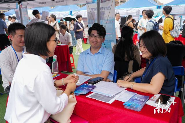 “雙向奔赴”也要講究效率。在招聘會現場,潮州市人民醫院的工作人員介紹,“簡歷收取是一面,明天就在學校舉行二面,今年還專門取消了筆試環節,若是合適的人才,我們馬上簽約。”