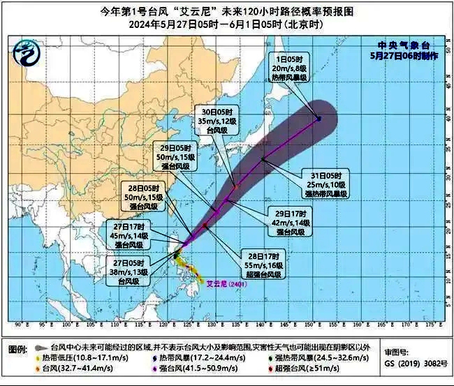 今年第1號(hào)臺(tái)風(fēng)“艾云尼”已于5月26日晚上由強(qiáng)熱帶風(fēng)暴級(jí)加強(qiáng)為臺(tái)風(fēng)級(jí),今天(5月27日)早晨5時(shí)其中心位于菲律賓馬尼拉東偏北方向約205公里的菲律賓東部近海海面上,就是北緯15.6度、東經(jīng)122.6度,中心附近最大風(fēng)力有13級(jí)(38米/秒),中心最低氣壓965百帕,七級(jí)風(fēng)圈半徑100~150公里,十級(jí)風(fēng)圈半徑50~60公里,十二級(jí)風(fēng)圈半徑30公里。
