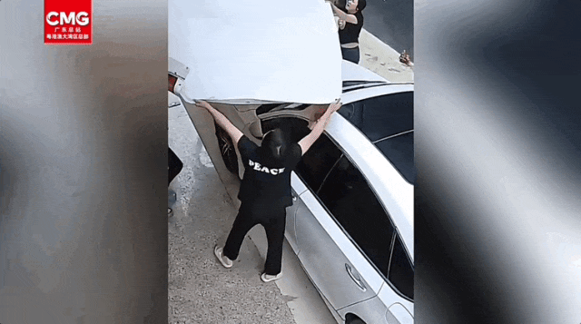 左側引擎蓋上有一處明顯的凹陷痕跡