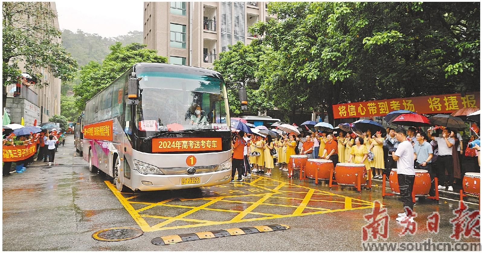 珠海第一中學平沙校區的學生乘坐大巴前往考點學校。南方日報記者 關銘榮 通訊員 張朝暉 攝