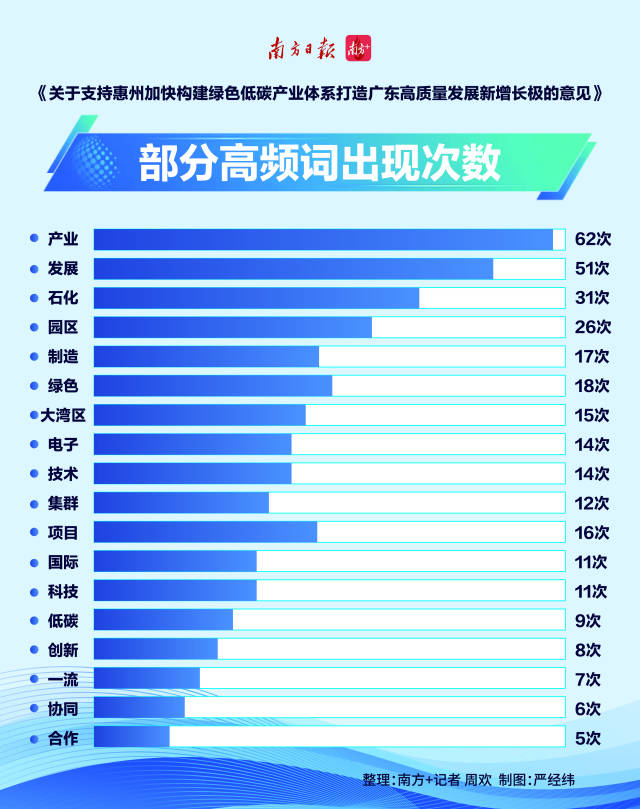與此相呼應的是,創新相關字眼也貫穿始終。文中出現技術、科技、創新分別達14次、11次、8次。不單是產業科技創新,還有體制機制的改革創新。其中明確,賦予惠州部分省級經濟社會管理權限,支持和鼓勵在要素市場化配置、營商環境優化、城市空間統籌利用等重點領域深化改革、先行先試,形成可復制可推廣的經驗。