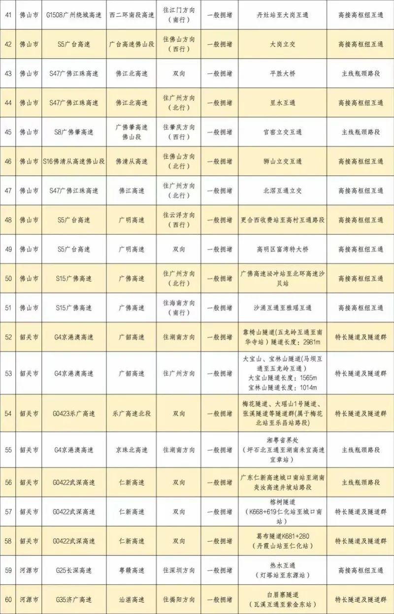 在公布的全省高速公路139處易堵點位中(含收費站兩處、服務區7處),惠州有15處一般易堵點,主要擁堵原因是,高速接高速的樞紐互通、主線瓶頸路段、隧道以及隧道群等。惠州涉及到的高速包括長深高速、武深高速、惠大高速、廣惠高速等。