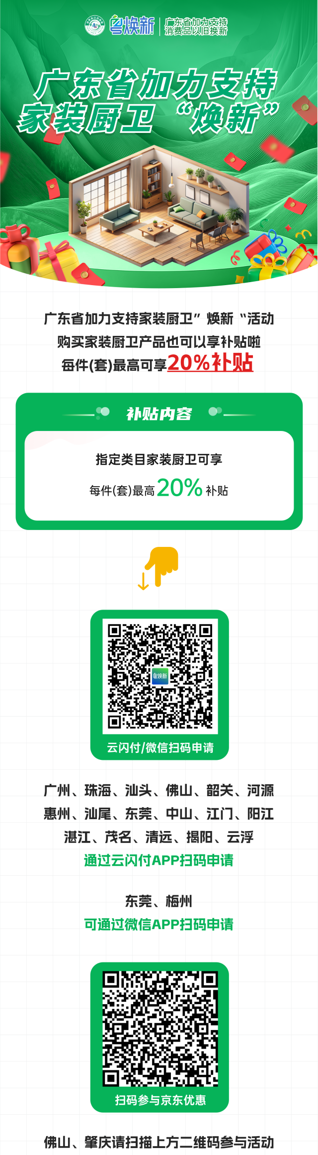 日前,廣東正式啟動 2024 年家裝廚衛“煥新”活動,該活動舉辦至 2024 年底,對個人消費者購買智能家居產品,舊房裝修、廚衛等局部改造所需產品,居家適老化改造所需產品給予補貼。