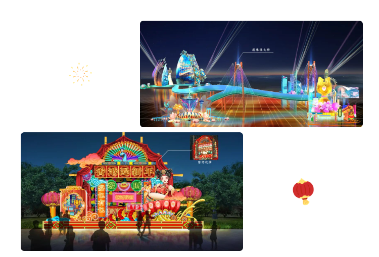 △分別為《粵劇》《科技巨人》燈組效果圖