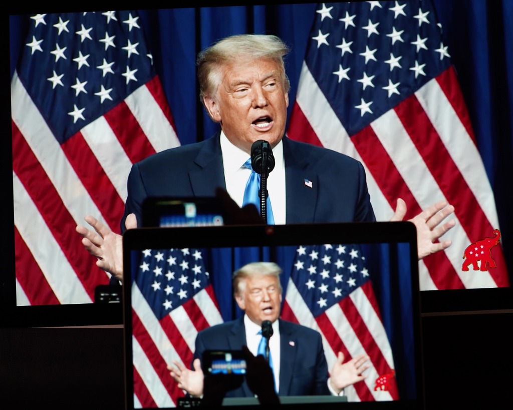2020年8月24日拍攝的視頻畫面顯示,時任美國總統(tǒng)特朗普在北卡羅來納州夏洛特市舉行的美國共和黨全國代表大會上講話。新華社記者劉杰攝