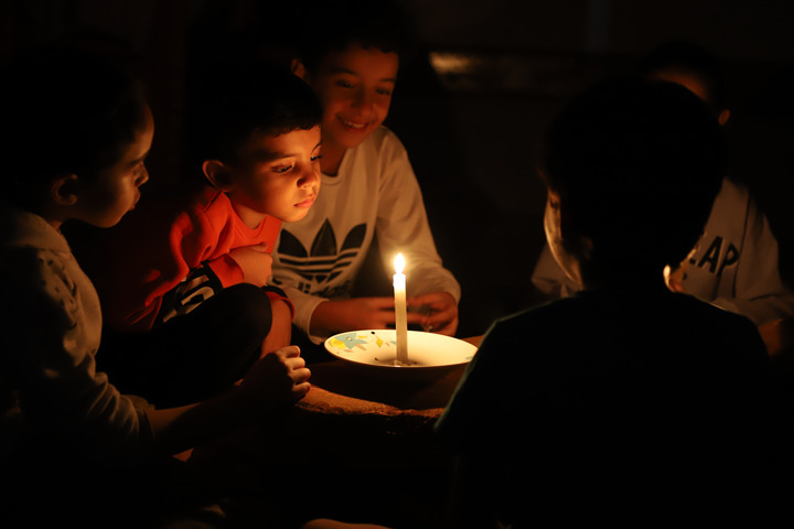 這是10月20日在加沙地帶南部城市汗尤尼斯拍攝的使用蠟燭照明的兒童。新華社發(fā)(里澤克·阿卜杜勒賈瓦德攝)