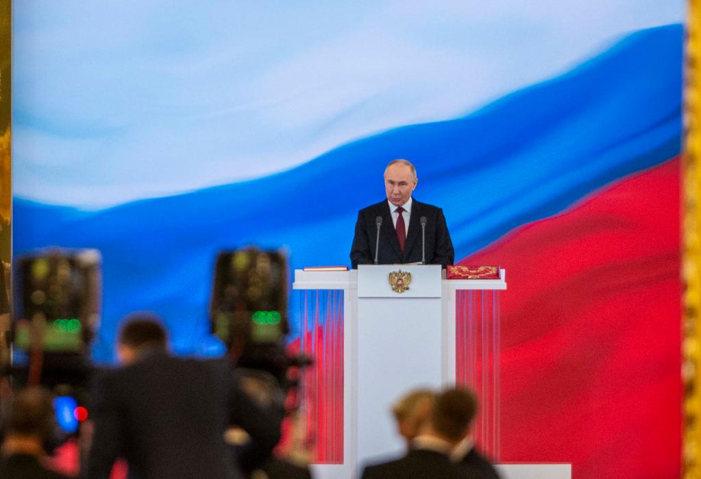 5月7日,俄羅斯總統普京在莫斯科克里姆林宮發表就職演說。新華社記者曹陽攝