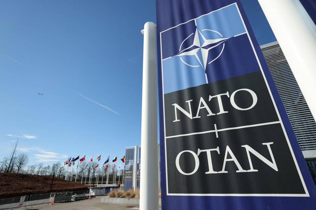 這是3月14日在比利時布魯塞爾拍攝的北約總部一角。新華社記者趙丁喆攝