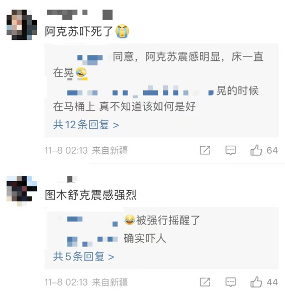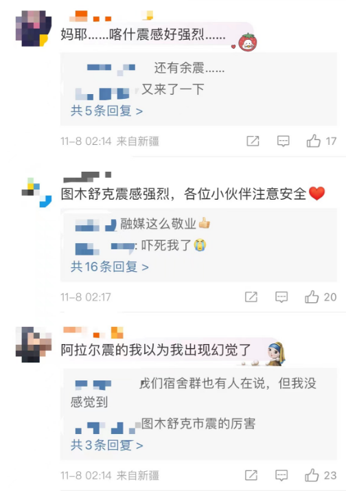 在第一次地震后,不少網友表示“震感很強烈”“被晃醒了”。