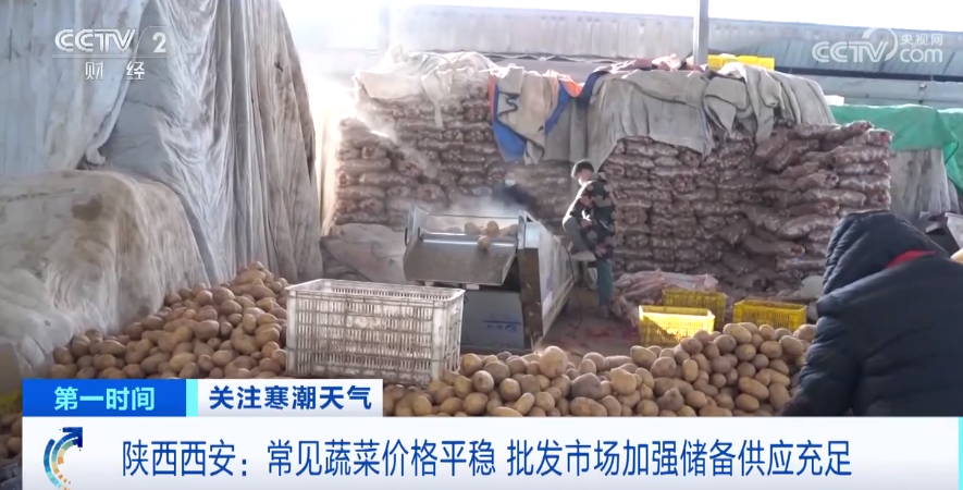 為了應對寒潮天氣給農副產品帶來的影響,在陜西西安市,當地加強組織貨源、增加庫存,全力保障商超、市場正常經營。