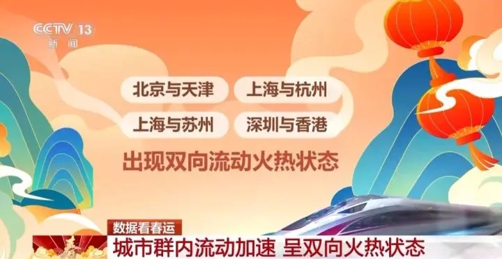 數(shù)據(jù)顯示,城市群內(nèi)的流動也在明顯加速,尤其是北京到天津、上海到杭州、上海到蘇州、深圳到香港這些熱門路線,出現(xiàn)了雙向流動火熱的狀態(tài)。