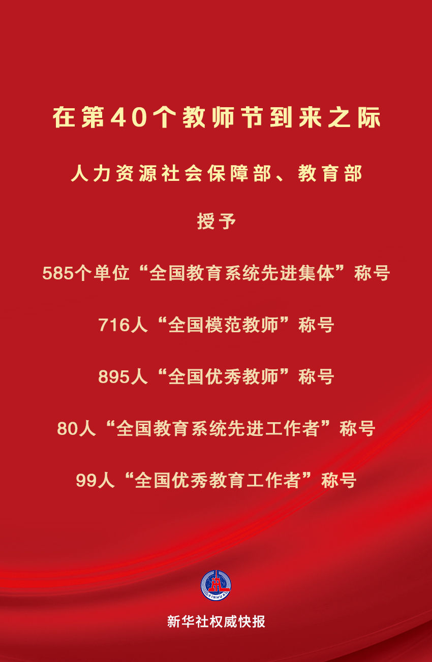 慶祝第40個(gè)教師節(jié)暨全國教育系統(tǒng)先進(jìn)集體和先進(jìn)個(gè)人表彰活動(dòng)9月8日在京舉行。