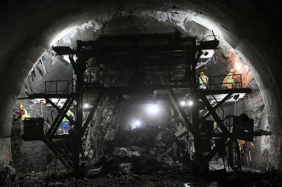 工人在新疆天山勝利隧道內施工(12月25日攝)。新華社記者 胡虎虎 攝