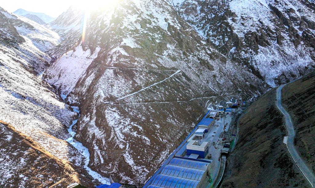 這是在新疆烏魯木齊縣拍攝的建設中的烏尉高速公路天山勝利隧道入口端(12月20日攝,無人機照片)。新華社記者 王菲 攝