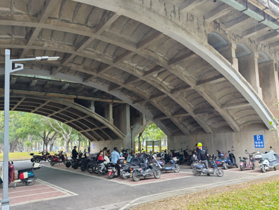 市東江公園服務中心副主任陸虹介紹,為解決非機動車停放問題,市市政園林事務中心實施了非機動車停放點改造工程,改造工程將公園沿濱江東路人行道鋪設地磚、劃線設置為非機動車停放點,在東江大橋橋底橋墩處、公園馬路對面的東江大橋橋墩處等地方增設非機動車停車位,設有總共約460個位,可充分滿足市民停車需求,沿路設置電動車停放點引導牌。