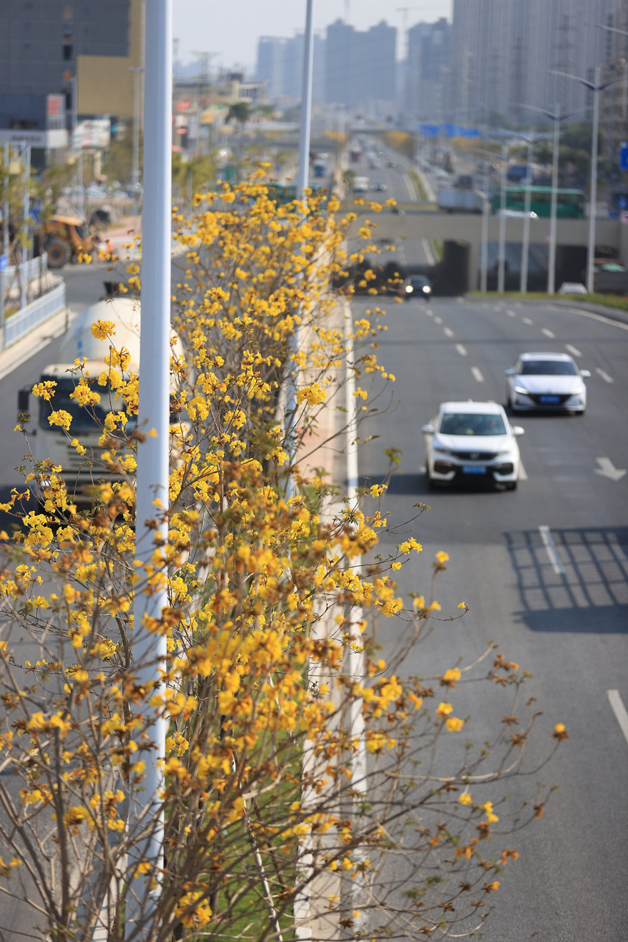 金龍大道快速路即將迎來金色大道季節!該快速路自通車以來,方便了市民出行。綠化帶種植的黃花風鈴木陸續綻放,即將進入盛花期,金龍大道將變成金色大道,成為我市城市的一道靚麗風景。