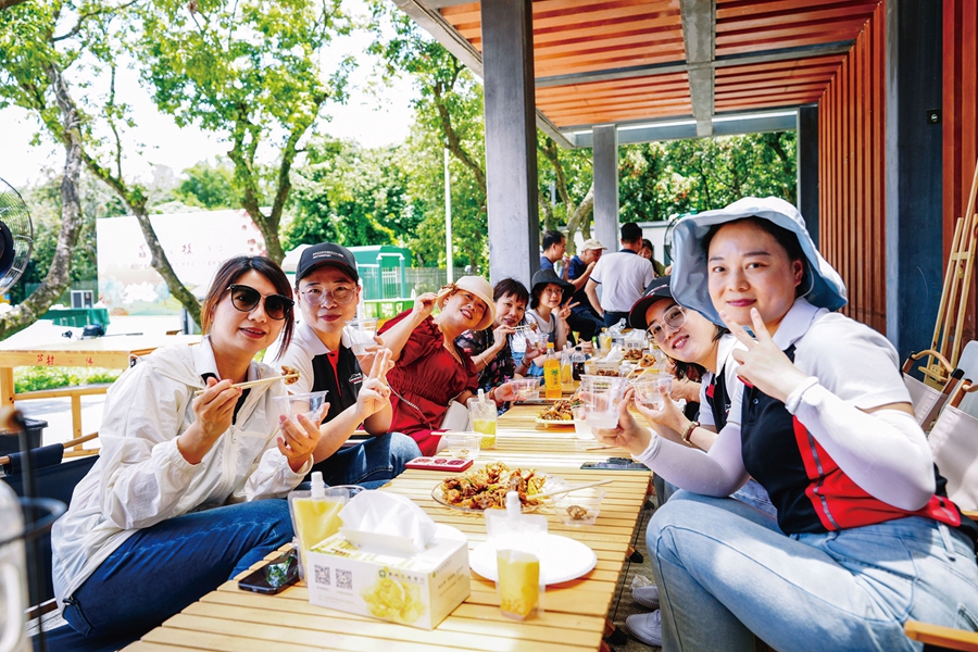 臨近中午,荔枝節又變了模樣,農家宴席的鍋灶在會場熱氣蒸騰,來自惠州某車友會的會員家庭圍坐一起享受荔枝燜雞的美味。新鮮的鄉土食材讓大家胃口大開,個個贊不絕口。據了解,本次蘆洲鎮生態荔枝節除了接待保障個人出行的游客體驗,還設計了專屬的團建活動菜單,可以根據需求定向安排體驗荔枝采摘、荔枝DIY和荔枝美食,讓團隊游客更便捷更沉浸的感受原生態鄉土風情。