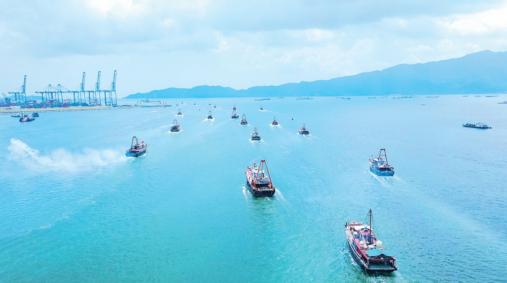 8月16日中午12時,隨著“開漁”令下,為期3個半月的南海伏季休漁期正式結束。惠東港口度假區、稔山范和村、黃埠鹽洲等地漁船陸續出港,漁民們把船只裝飾一新,在汽笛聲中揚帆起航,開始新一輪的海上勞作;大亞灣海域百余艘漁船分別從東升小桂港、澳頭港揚帆起航,最終在三門島海域匯成一股洪流涌向南海,一派百舸齊發入海爭“鮮”的浩蕩景象。