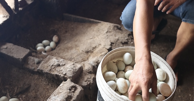 由于生長在海邊,而且吃海鮮長大,所以這里的鴨子被形象地叫作海鴨,產下的蛋則稱為海鴨蛋。海鴨蛋養殖戶林漢江告訴記者,他家兩代人都靠賣海鴨蛋為生。每天早上他就開始撿鴨蛋,每天能撿1000多個。林漢江表示,吃玉米和海鮮長大的海鴨生出的海鴨蛋金黃透亮,幾乎沒有腥味。他每天預留出部分新鮮鴨蛋后剩下的都用海鹽和黃泥腌制起來。腌制過后的鴨蛋香味撲鼻,滿口盈香。
