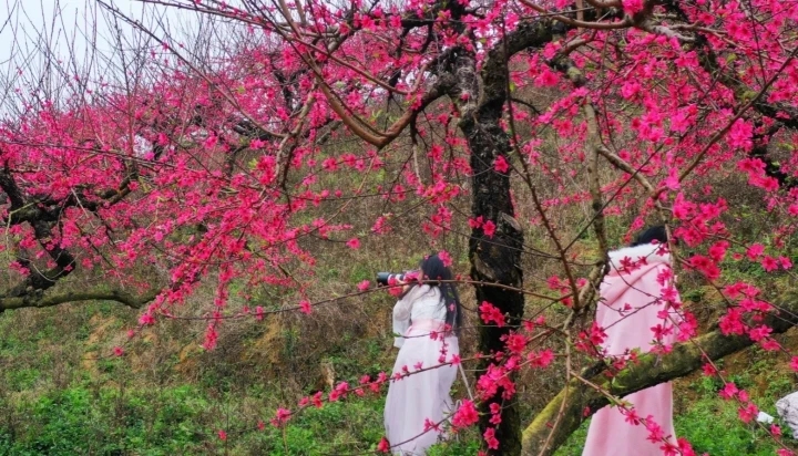 “往年我們要去河源市連平縣看桃花,沒有想到象頭山也有桃花開得這么美。”來自惠城區的邱女士特意約了4個好姐妹驅車前來賞花,邱女士滿臉喜色地說道:“來到這里,仿佛來到了世外桃源,心情十分開心!”她特意穿上了白色飄逸的古裝服,在這爭奇斗艷的桃園里記錄下美麗的瞬間。