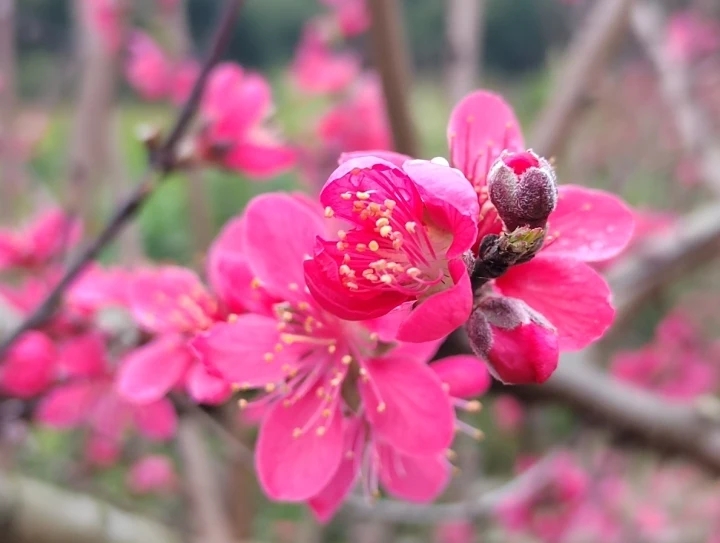 春意俏枝頭,桃花競相開。近日,在博羅縣泰美鎮象頭山上,120畝2000多棵桃樹的鷹嘴桃園花開正旺,漫山遍野的桃花、爭奇斗艷,游客三五成群結伴前來賞桃花。