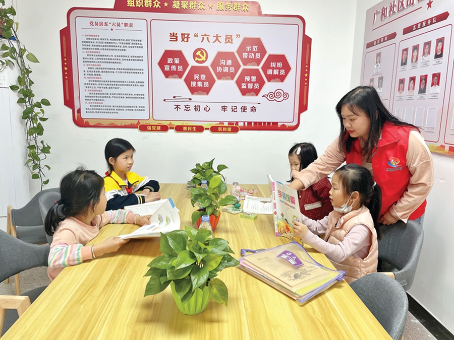 廣和社區“紅色出租屋”黨群服務站后面就是一所小學!昂⒆酉挛缢狞c半就放學了,不少家長六七點才下班,接送問題讓這部分家長頗為頭疼。我們何不開展托管服務,幫助群眾解決這一難題?”廣和社區“紅色出租屋”黨群服務站負責人介紹,該服務站發出招募令,組建志愿服務團隊開展托管服務!爸灰议L來電話,我們的志愿者就會穿上紅馬甲,將孩子接到‘紅色出租屋’,服務站還有志愿者輔導孩子課業!痹撠撠熑苏f。