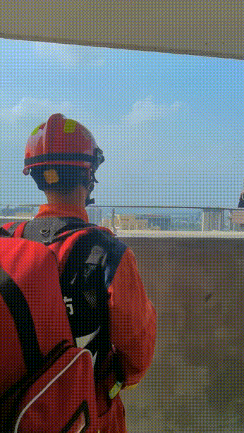 現場民警立即與男子進行溝通心理輔導,消防員則從樓頂后側上去慢慢靠近進行勸說,穩定他的情緒。