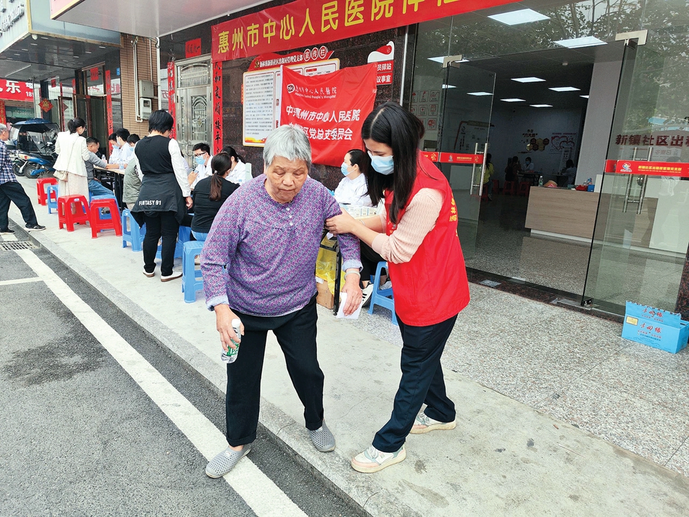 惠州市中心人民醫院到新鎮社區“紅色出租屋”黨群服務站開展義診活動。