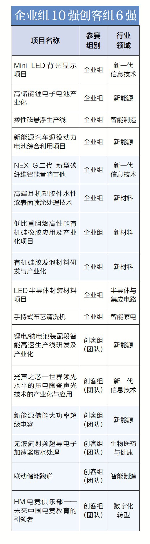 本屆“創客廣東”惠州地市賽圍繞“創客廣東,匠心惠州”主題,吸引了154家企業/團隊報名參賽,其中不乏細分領域的龍頭企業項目,有效發揮了惠州市乃至粵港澳大灣區部分龍頭企業的積極引導作用,激發了小微企業和創客創新創業活力,推動中小微企業創新創業與轉型升級,促進大中小企業融通發展。