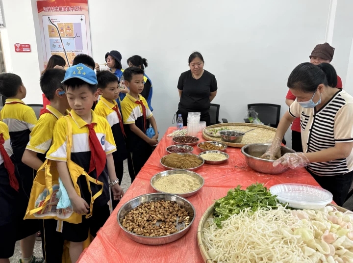 一路撿跑來到瀝林村出租屋管理黨支部,大家停下腳步進入到瀝林本土非物質文化遺產“扭生”的傳統技藝課堂。一份份五彩繽紛的“扭生”映入眼簾。“‘扭生’真好吃,我也想試試看怎么做。”志愿者家長、同學們紛紛踴躍參與。