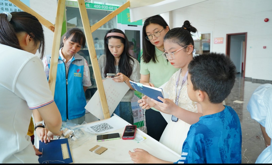 當日,活動現場設置了非遺技藝剪影、雕版印刷體驗、書簽DIY、趣味立體圖書展示、中國郵政·悅讀郵局等互動游戲,家長們帶著孩子流連在各個攤位,體驗非遺文化,感受閱讀魅力。