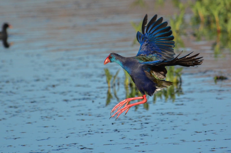 現身潼湖國家濕地公園的紫水雞。惠州日報記者邱舒婷 通訊員郭翔 攝