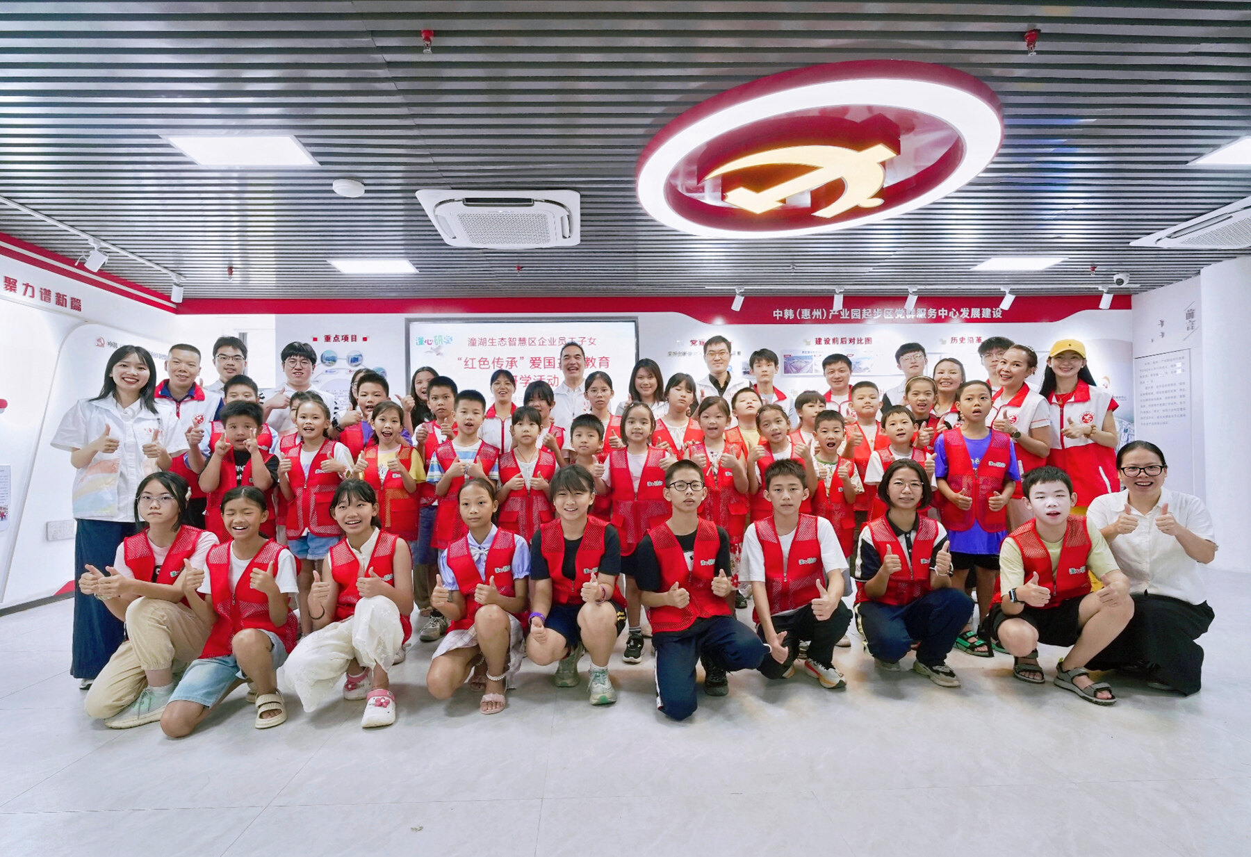 本次活動由惠州潼湖生態智慧區管理委員會指導,潼湖生態智慧區產業發展事務中心(以下簡稱“產發中心”)主辦,中韓(惠州)產業園起步區黨群服務中心、惠州仲愷高新區家友社會服務中心協辦,以“紅色傳承+實踐體驗+情感共鳴”的模式,為孩子們打造了一場沉浸式的愛國主義教育之旅。