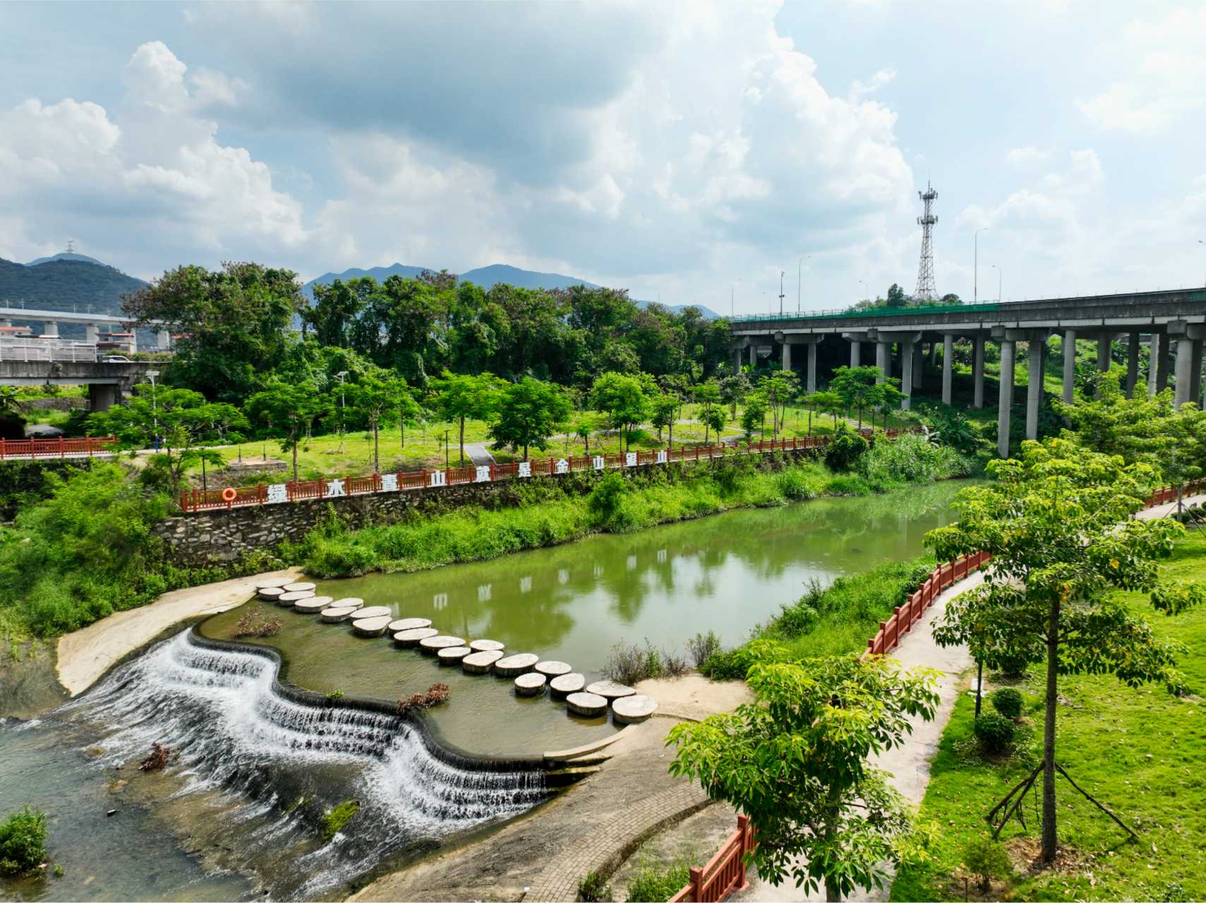 沿X204線駛入瀝林鎮南部,走廊沿線種植苗木約2.15萬株,打造出總長10公里的“一路繁花,綠富同興”景觀帶。君子營村村道旁,荔枝林掩映下的農房煥然一新,“君子”主題文化墻、打卡點隨處可見;企嶺村,高速橋下荒地“蝶變”為“河畔紅嶺公園”,健身器材、兒童滑梯、涼亭一應俱全,每天傍晚都有村民在此跳廣場舞。“以前這里雜草叢生,現在成了全村最熱鬧的地方。”一名散步的村民笑著說。