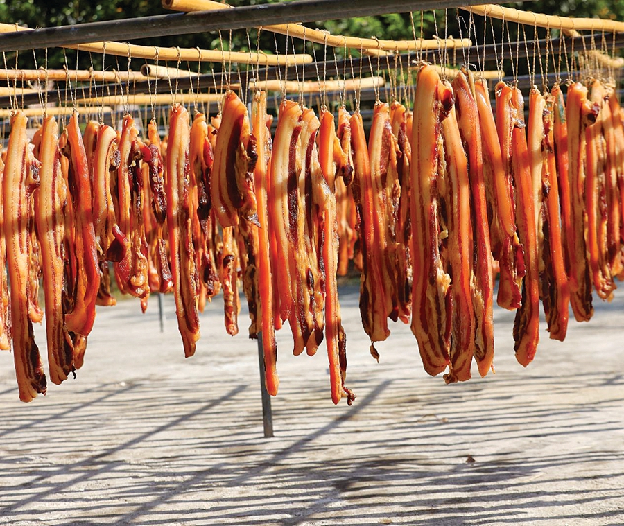 西群臘味采用本地自養(yǎng)土豬,制作過程不使用任何添加劑,良好的生態(tài)環(huán)境加上適宜的氣候,西群臘味油光紅亮、口感香甜。優(yōu)美的環(huán)境和飄香的臘味吸引了越來越多的人來西群體驗農(nóng)家樂,逐漸形成了一條產(chǎn)業(yè)鏈。截至目前,西群村已生產(chǎn)臘味約4萬斤,且一直處于供不應(yīng)求的狀態(tài),很大程度拓寬了村民的致富門路。