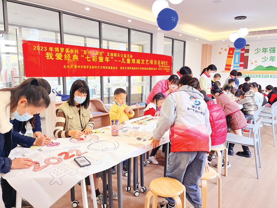 龍華鎮鄉村“復興少年宮”建設是博羅縣鄉村“復興少年宮”建設的縮影。博羅縣是全國首批50個鄉村“復興少年宮”建設試點縣(區)之一,充分依托全縣新時代文明實踐中心(所、站)、學校原有鄉村少年宮以及公共教育和文化服務陣地,按照“示范建設一批、校外融入一批、校內提升一批、資源整合一批”的思路,成體系打造滿足農村群眾和家庭對未成年子女培養需求的身邊樂園。在活動開展中,堅持把培育和踐行社會主義核心價值觀作為根本任務,緊貼鄉村群眾和家庭對教育培養未成年子女的現實需要,突出道德培育、文體娛樂和勞動實踐三個重點,精心設計“接地氣、冒熱氣、聚人氣”的特色活動,讓孩子們在活動實踐中益心啟智、健碩身心、茁壯成長。