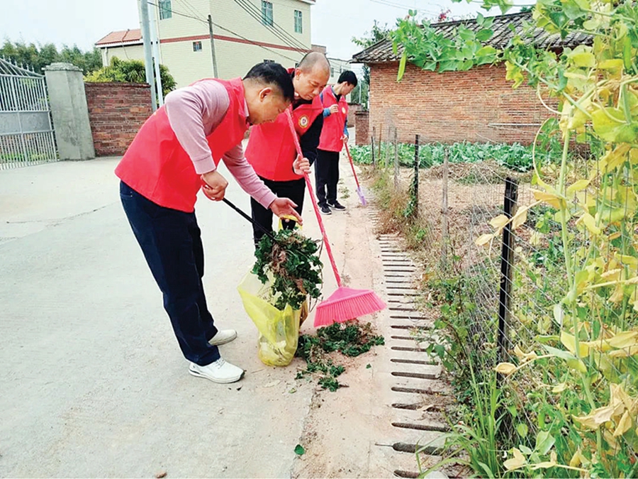 志愿者在清掃村道。