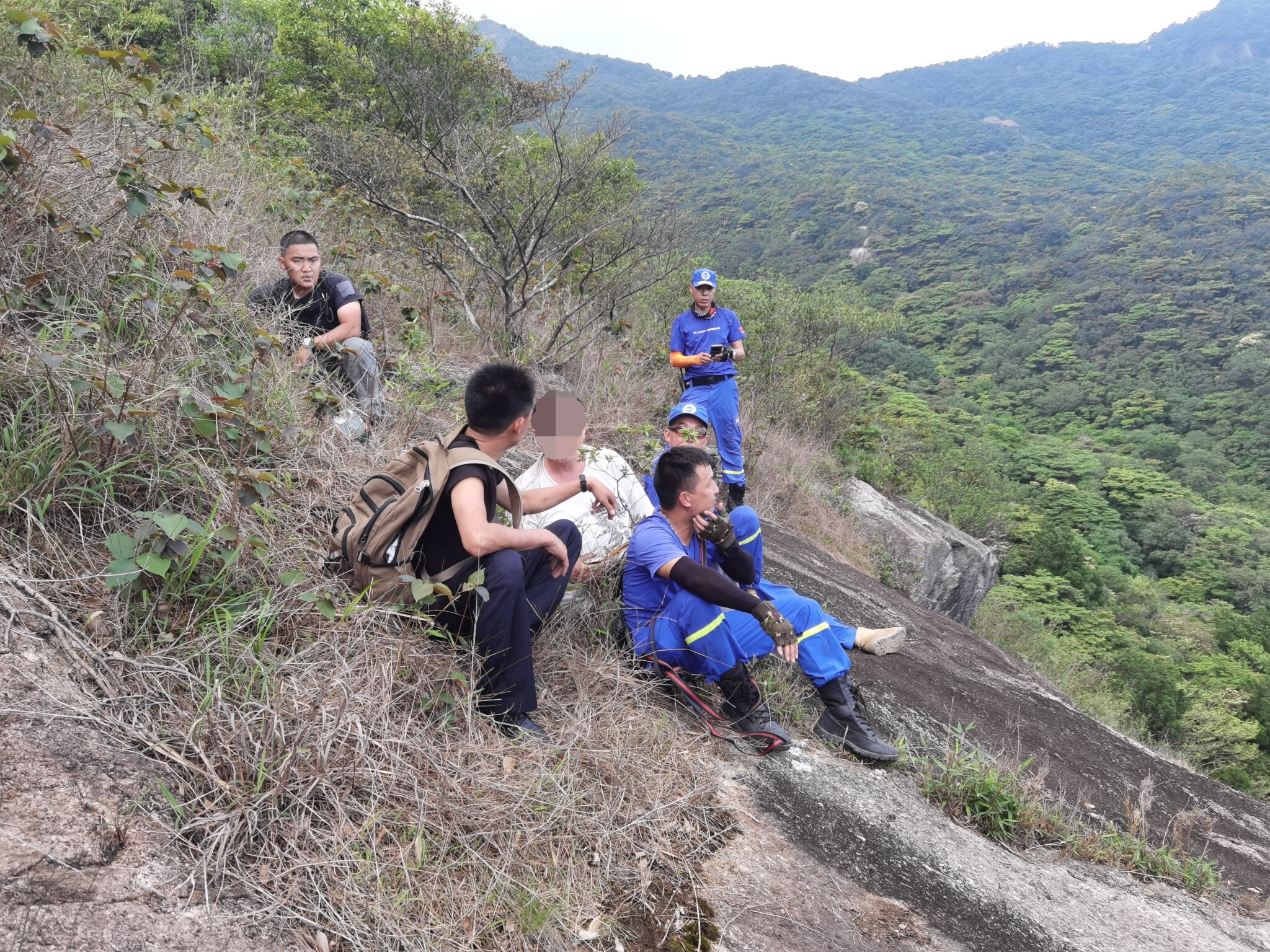 接報后,羅浮山派出所值班副所長楊日林高度重視,立即向上級匯報,組織值班人員研究制定救援方案,并率隊從羅浮山自然保護區入口開車直奔分水嶺開展搜救工作;羅浮山所另一組搜救人員聯合藍天救援隊,攜帶能量補給品,迅速接力開展救援。