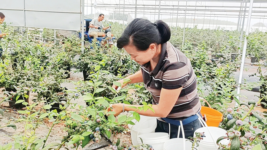 藍莓園也為周邊村民帶來了“家門口”就業的機會。正值采收季,藍莓園里務工的村民達到100人。家住長寧鎮圩鎮的廖秀文便是其中一個。“一天上班8個小時能掙一百多元,收入很不錯。”廖秀文笑著說道。