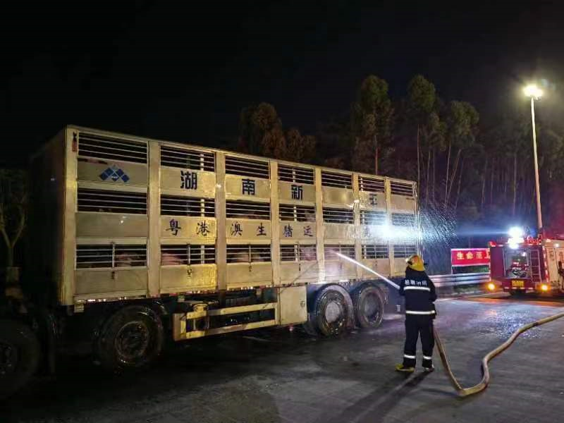 5月29日晚,惠州博羅縣楊僑消防救援站接到一起高速救助警情,武深高速柏塘平安段一輛運載生豬的貨車發(fā)生故障停靠在收費站出口邊上。因近日天氣高溫濕熱,車上的“二師兄”隨時有生命危險。情急之下,司機趕緊撥打了119報警電話,向消防救援人員求助。